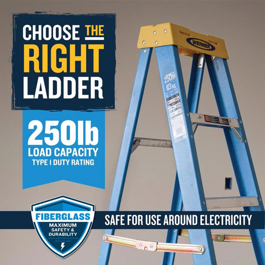 Werner 8 ft. H Fiberglass Step Ladder Type I 250 lb. capacity